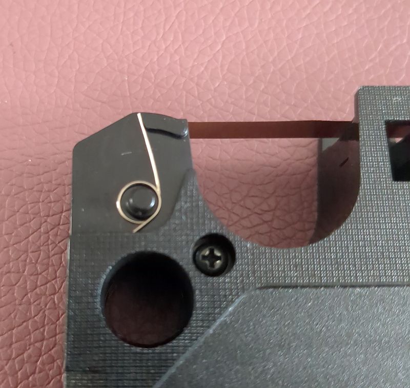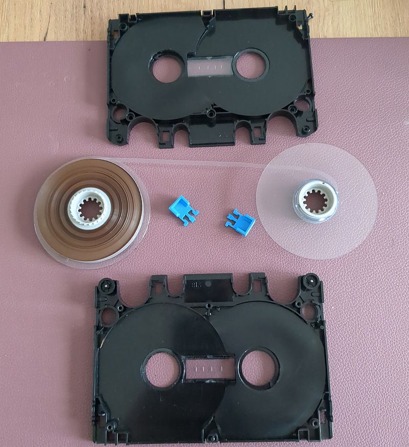Beim Öffnen der Cassette ist darauf zu achten, dass die Feder nicht abhanden kommt! Nach dem Öffnen liegen die beiden Gehäusehälften vor uns... | |