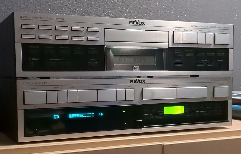 Im Dezember 2024 bin ich überraschend Eigentümer zweier „Revox-Schätzchen“ geworden. Durch Zufall bin ich bei den Kleinanzeigen auf einen Verstärker (B 250) und einen CD-Player (B 226) von Revox gestoßen, die neben weiteren Revox-Geräten (zwei Bandmaschinen und ein Plattenspieler) in meiner Heimatstadt (wohl aus einer Erbschaft) zum Verkauf standen.